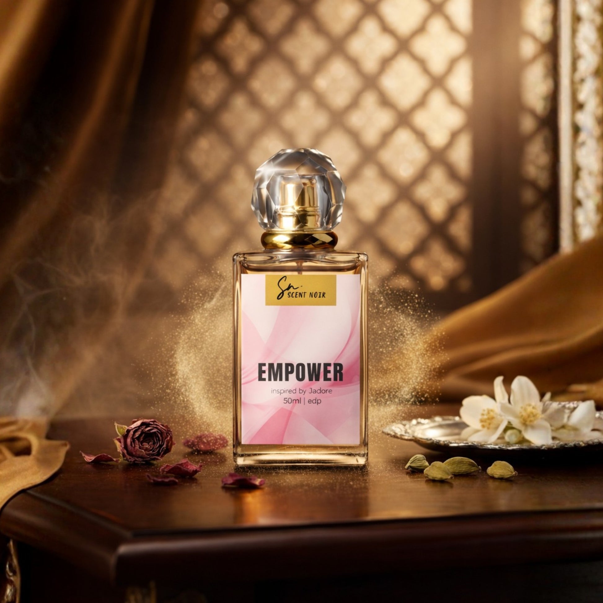 Inspired by J’adore Dior, this premium niche perfume is designed for women who wish to make a statement without saying a word. Empower by Scent Noir is more than a fragrance—it is an emblem of femininity, sophistication, and enduring allure. A signature scent for those who radiate elegance and leave a lasting impression wherever they go.